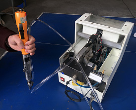 - 手持式鎖螺釘機是由鎖緊工具和自動送螺釘機組成,手持工具對準產品下壓鎖完一顆螺釘后,自動送釘機會快速送來下一顆螺釘入螺絲卡爪內,節(jié)省了手抓螺絲的時間。