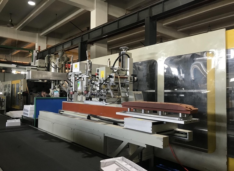 空調(diào)外殼配合注塑機械手實現(xiàn)自動印刷自動燙金
